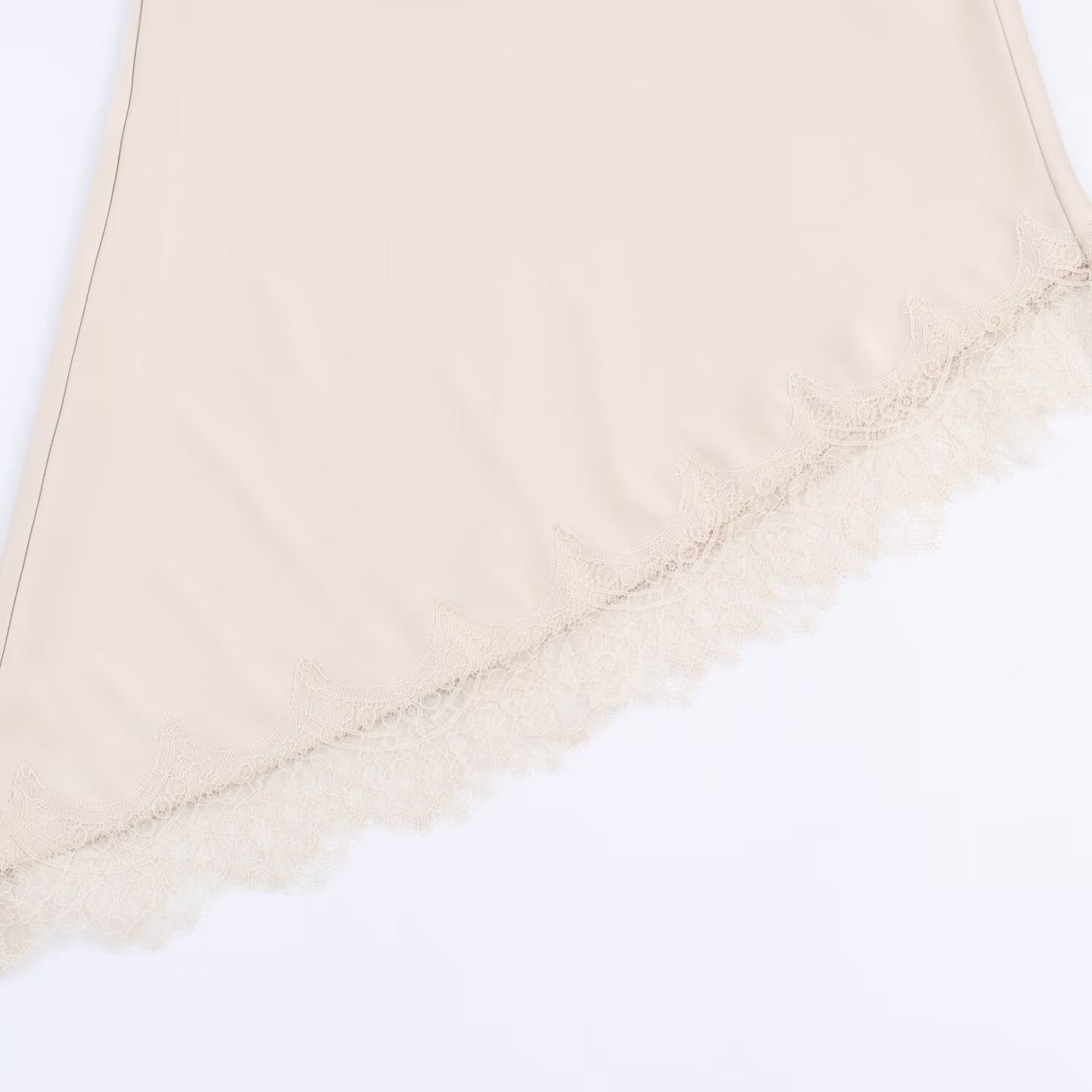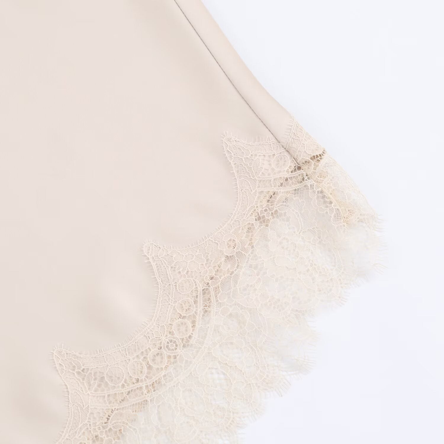 - Intricate lace hem